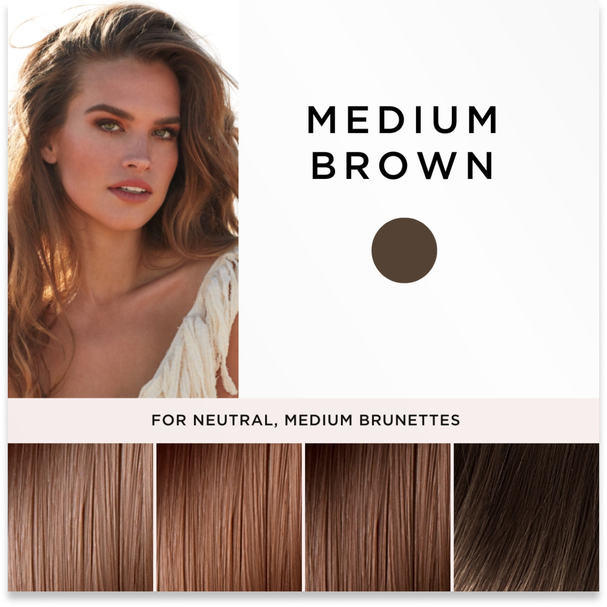 'Medium' is a neutral universal brown shade that works well for anyone as a medium brown option, particularly for individuals with medium to darker skin types.